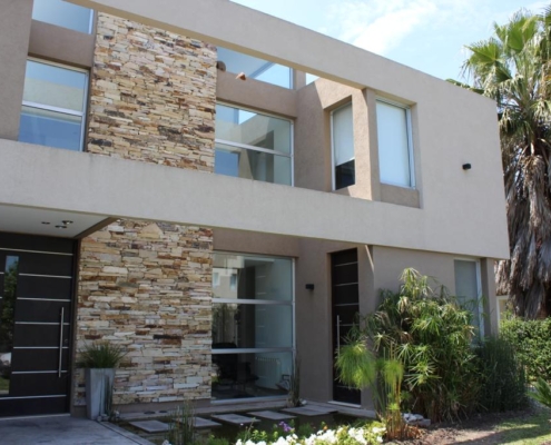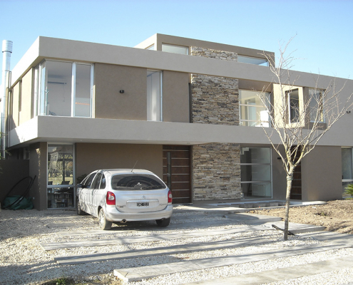 La obra terminada se realizó en doce meses con estructura independiente de hormigón. Un impluvium en sector hall/escalera que baña de luz todo ese espacio, mucha luz natural interior y funcionalidad indiscutible. Una planta alta adaptable para los nuevos miembros a venir, y en lenguaje exterior muy moderno y cálido, con piedra, vidrio y acabados de colores tierra.