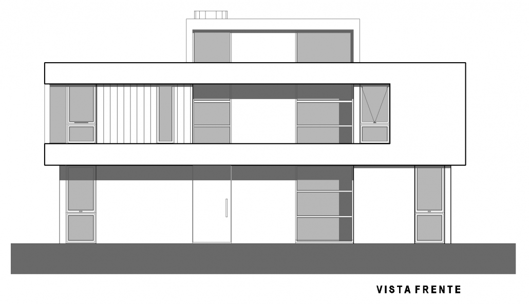 El terreno rectangular de 800M2 y una casa con mucha presencia en un lenguaje puramente racionalista.