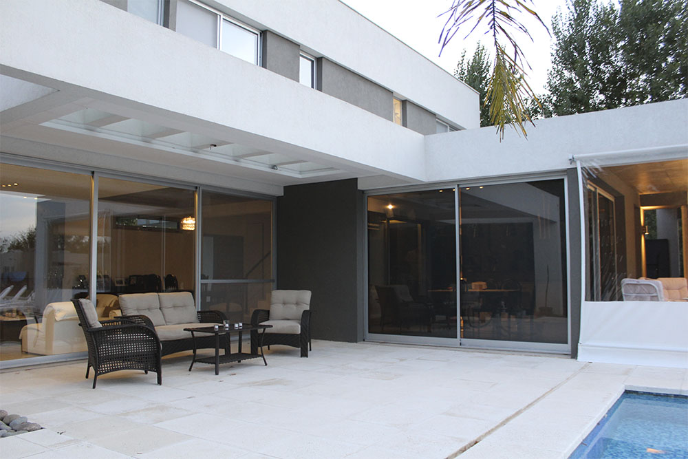 El diseño del jardín y exterior también fue intervenido y tuvo ajustes en la segunda etapa dando como resultado mayor superficie de piscina y de lugares de descanso y esparcimiento.